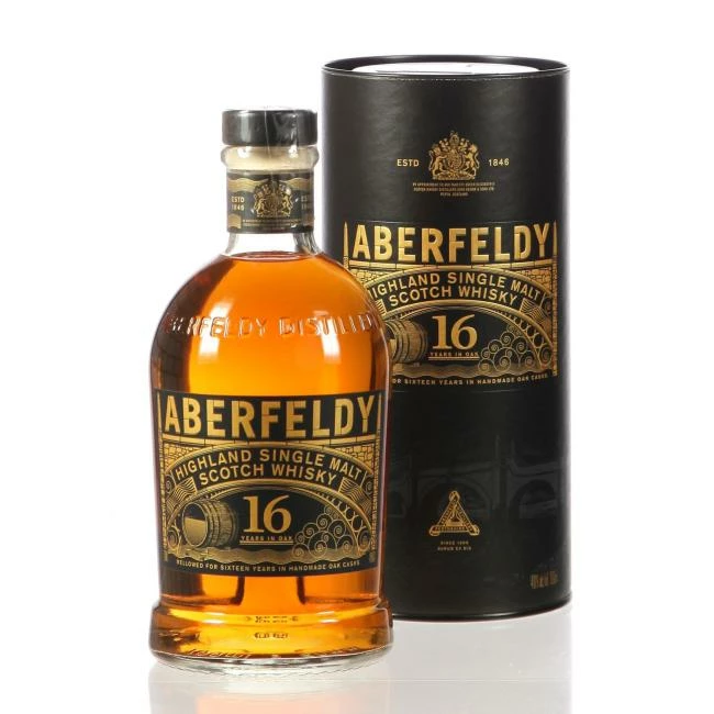 Die Brennerei Aberfeldy ist für ihre süßen und milden Whiskys bekannt. Neben den 12- und 21-jährigen Single Malts hat sie inzwischen auch eine 16-jährige Standardabfüllung auf den Markt gebracht.