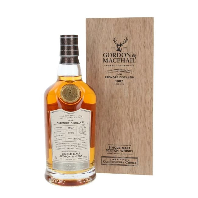Der erhabene 35-Jährige Ardmore gehört zur Connoisseurs Choice von Gordon & MacPhail, in welcher der unabhängige Abfüller seltene Whiskys von namhaften sowie auch kleineren Brennereien aufspürt und in eigenen Fässern lagert. Gereift wurde der 1987 geborene Single Malt Whisky in einem Refill Hogshead aus Amerika, ehe er 2022 in Fassstärke, weder kühlgefiltert noch gefärbt abgefüllt wurde.