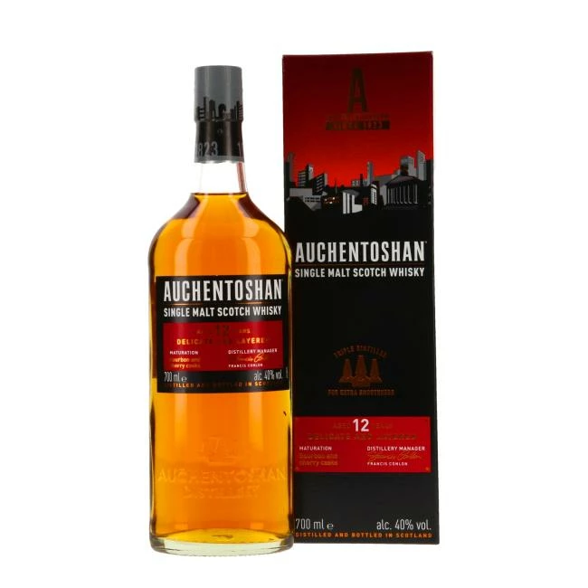 Der 12-jährige Auchentoshan erschien 2019 im neuen Design. Damit möchte man ein junges, urbanes Publikum ansprechen. Die Lowland Brennerei Auchentoshan ist bekannt für ihre dreifache Destillation, die den Single Malt Whisky besonders weich und mild macht. Die 12-jährige Reifung in Bourbon- und Sherryfässern fügt dem Malt Komplexität hinzu. Dadurch entsteht ein sanfter und vielschichtiger Auchentoshan – delicate and layered.
