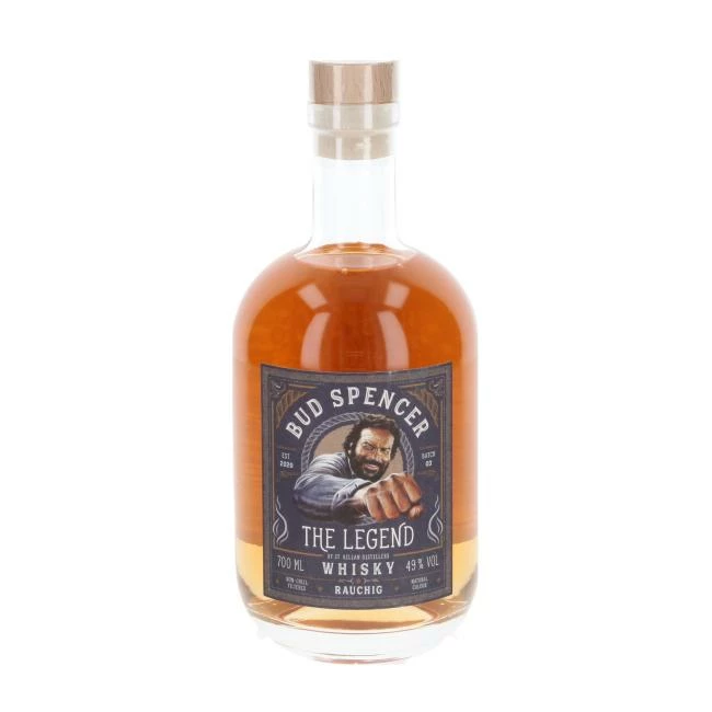 Dies ist die rauchige Variante der Bud Spencer-Flasche von St. Kilian. Die Single Malts sind dem – in jedem Sinne – schlagfertigen Schauspieler gewidmet. In Western-Filmen kämpft er für Gerechtigkeit und legt unkonventionell sämtliche Halunken und Verbrecher lahm. Als Belohnung trinkt er gerne mal einen wohlverdienten Whisky. Wie die anderen Abfüllungen reift auch die rauchige sowohl in Bourbonfässern als auch in italienischen Amarone Rotweinfässern.
