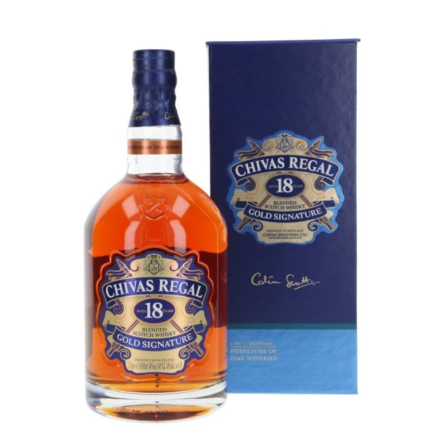 Der 18-jährige Chivas Regal wird aus verschiedenen Malt und Grain Whiskys kreiert. Unter anderem ist auch der hauseigene Single Malt Strathisla enthalten. Jetzt als 1 Liter Flasche erhältlich.