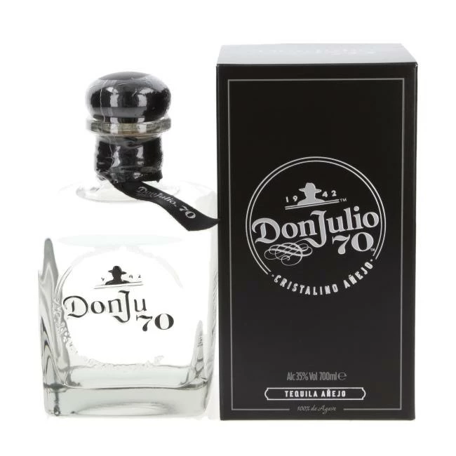 Der Don Julio 70 Cristalino Añejo Tequila ist der weltweit erste klare ‚Añejo‘, also Tequila mit Fassreifung, welcher anlässlich des 70. Jahrestages zu Ehren des Gründers Don Julio González entwickelt wurde. Nach zweifacher Destillation und 18 Monaten in Fässern aus amerikanischer Weißeiche wird dieser sorgfältig durch Holzkohle gefiltert um die intensive Agavennoten wiederherzustellen. Der Anbau und die Ernte der Agaven für den Don Julio Tequila findet in den ‚Highlands‘ von Jalisco in Mexiko statt, welche das perfekte Mikroklima und einen reichhaltigen Vulkanboden bieten. Es ist ebenfalls die Geburtstätte der von Don Julio Gonzalez 1942 gegründeten La Primavera Brennerei und somit der Beginn des Don Julio Tequila.