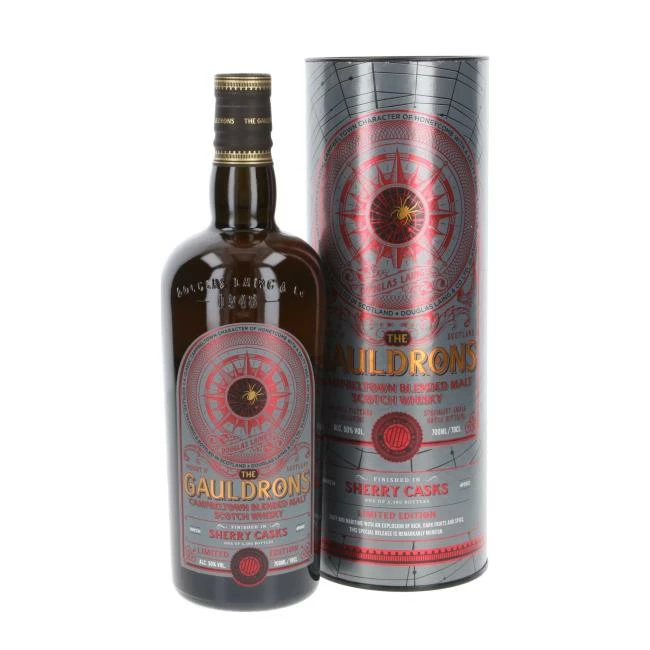 Der The Gauldrons Sherry Cask Edition #2 ist ein Blend aus Single Cask Single Malts aus der Region Campbeltown. Die lange Reifezeit in spanischen Sherryfässern und die erhöhte Stärke von 50% vol. verspricht eine süß-salzige Geschmacksrichtung und wurde vom unabhängigen Abfüller Douglas Laing abgefüllt, der seit 1948 als Spezialist für Small Batch- und seltene Einzelfassabfüllungen etabliert hat.