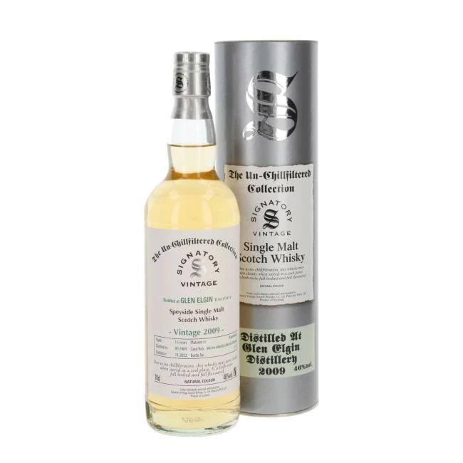 Dieser 13-Jährige Glen Elgin gehört zur Un-Chillfiltered Reihe von Signatory, in der die Whiskys nicht kühlgefiltert wurden. Damit sie sich nicht eintrüben, wurden sie mit 46% abgefüllt. Die Single Malts fallen dadurch besonders intensiv im Geschmack aus. Der Malt wurde aus vier Hogsheads komponiert.