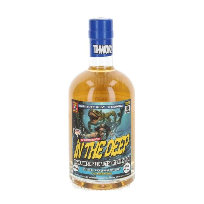 Auch der Inchmurrin In the Deep gehört zur WhiskyHeroes Serie des unabhängigen Abfüllers Brave New Spirits, der zudem als Blender und Brennereibauer auftritt. Das Glasgower-Unternehmenkreierte drei seiner Editionen im Superhelden-Design exklusiv für den deutschen Markt. Der Single Malt aus der Loch Lomond Brennerei reifte 10 Jahre in einem einzelnen First Fill Bourbon Barrel. Der limitierte Whisky aus dem Einzelfass wird weder kühlgefiltert noch gefärbt direkt in Fassstärke abgefüllt.