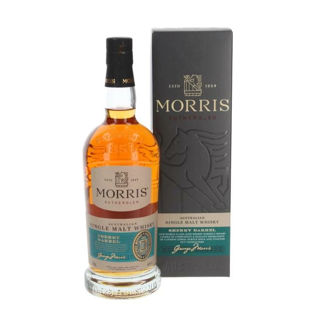 Die Morris Distillery mit Sitz im australischen Rutherglen, Victoria stellt seit 1859 Likörweine her und macht sich die weitreichende Erfahrung gepaart mit handwerklichem Geschick und einer Portion Neugier für ihre Single Malt Whiskys zunutze. Das Familienunternehmen setzt dabei auf 100 % australisches Gerstenmalz. Nach Destillation in einer wiederaufbereiteten kupfernen Pot Still aus den 1930er Jahren reifen die Kreationen zunächst in amerikanischen und französischen Weinfässern familiengeführter Winzereien aus Barossa und Coonawarra. Veredelt werden die Whiskys in hauseigenen Fässern. Der Morris Sherry Barrels wurde in einer Kombination aus ehemaligen australischen Rotweinfässern aus französischer und amerikanischer Eiche gereift und in Fässern veredelt, in denen der Morris of Rutherglen 10yr-Aged Amber Apera (Sherry) gelagert wurde. Dieser Whisky wird mit 46 % Vol. abgefüllt und ist ein Single Malt, der seine Malznoten und den Einfluss der Sherryfässer sehr schön ausbalanciert.
