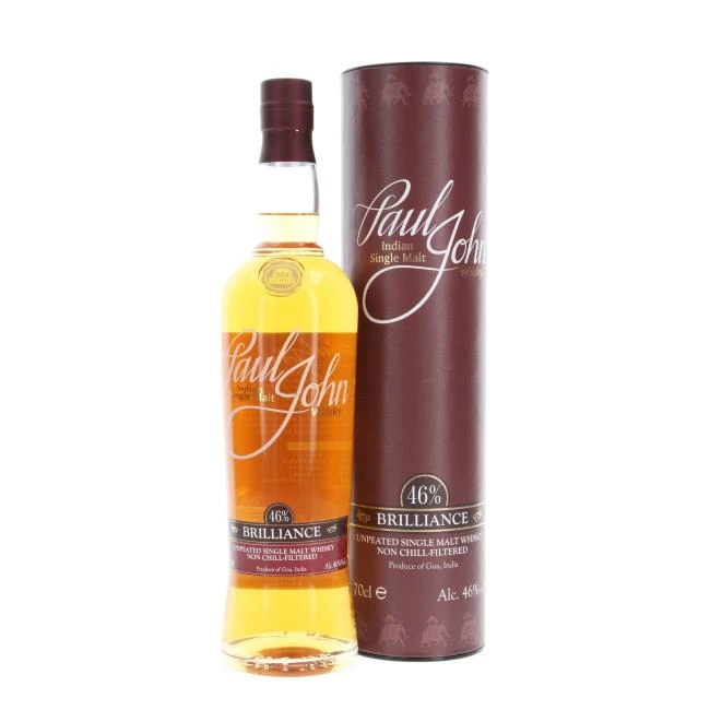 Paul John Brilliance reifte ausschließlich in ehemaligen Bourbonfässern. Die John Brennerei wurde 1992 von Paul P. John in Goa im Süden Indiens gegründet und produziert Whisky nach britischem Vorbild.