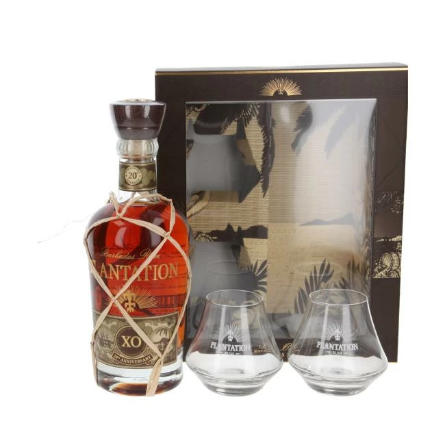 In diesem praktischen Geschenk-Set sind außerdem 2 elegante Tumblergläser mit Plantation Schriftzug enthalten.