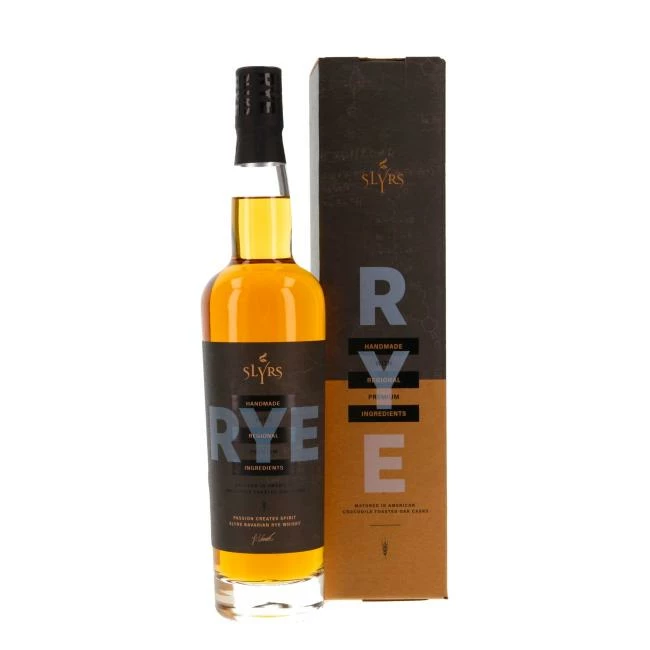 Slyrs Bavarian Rye ist der erste Rye Whisky aus der Brennerei am Schliersee. Neben Roggen besteht die Maische auch aus Weizen, Gerste und Quellwasser aus den Bergen rund um den Schliersee. Amerikanischer Rye Whiskey wird standardmäßig in frisch ausgebrannten Fässern aus amerikanischer Weißeiche gelagert und so reifte auch der Slyrs Bavarian Rye in stark ausgebrannten solchen.