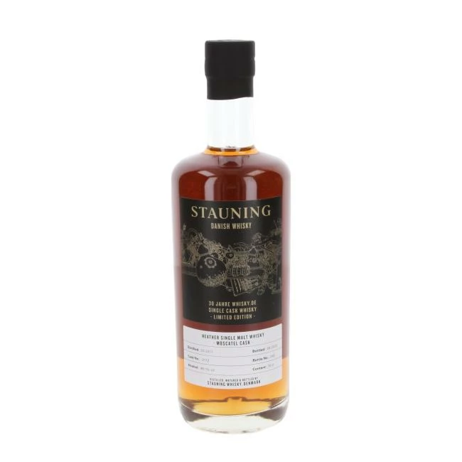 Dieser Stauning Moscatel wurde anlässlich zum 30. Firmenjubiläum von Whisky.de abgefüllt. Initial im First Fill Bourbonfass gereift und in Moskatellafass veredelt, entstand ein ausgezeichneter, ausbalancierter Single Malt in limitierter Auflage.