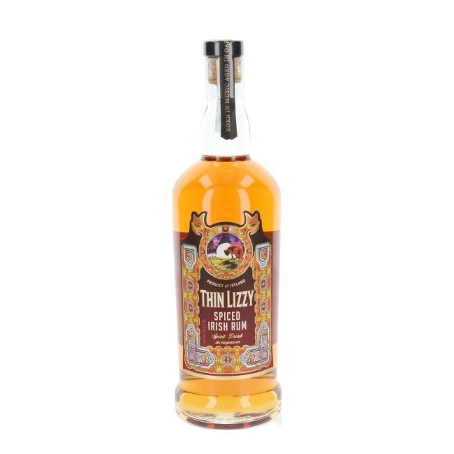 Jim Fitzpatrick gestaltete die ikonischen Album-Cover der Band und lenkt die Blicke auch auf den Thin Lizzy Spiced Rum. West Cork Distillers kreierte die Basis für den irischen Rum aus Melasse und reift diesen in Eichenfässern. Er wird mit Gewürzen, Aromen und etwas Karamell verfeinert. Das Ergebnis ist intensiv , süßlich und mit Akzenten von Nelke und Muskat.