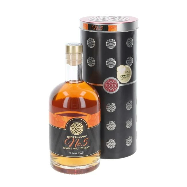 Der Weyermann No. 5 Single Malt reifte für 4-5 Jahre in fünf ausgewählten Fässern, des hauseigenen Barrelrooms. Der Whisky wurde mit 43 % vol. in Trinkstärke in 0,5 Liter Flaschen abgefüllt. Weyermann ist ein Traditionsunternehmen mit Sitz in Bamberg, Deutschland, was sich ursprünglich mit der Herstellung und dem Vertrieb von Spezial-Malzen verschrieben hat. Die Firma hält mehr als 24 eingetragene Warenzeichen und produziert neben Spirituosen auch Bier, Kaffee und Lebensmittel.