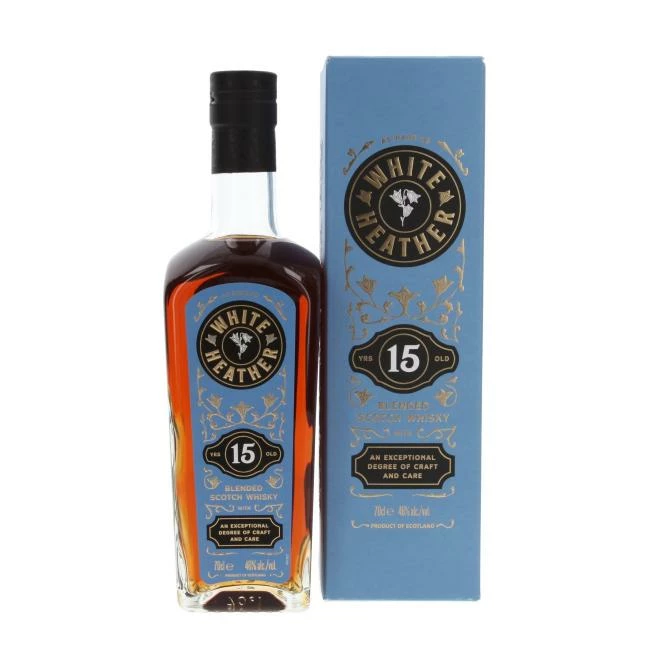 Für den Blended Scotch White Heather wurde eine Rezeptur mit besonders hohem Single-Malt-Anteil von 47% gewählt. Der Blend aus Single Malt und Grain Whiskys stammt aus unterschiedlichen Regionen in Schottland. Vertreten sind die Highlands, Islay und die Speyside. So vielseitig wie die Regionen in denen der Blend vermählt wird, sind auch die Fasstypen, die für die Reifung verwendet wurden. Diese reichen von erstbefüllten amerikanischen Eichenfässern, über Sherry Butts und zweitbefüllten Hogsheads für die Vorreifung- bis hin zu Pedro Ximénez Puncheons, Oloroso Puncheons und amerikanischen Virgin Oak Casks für die Nachreifung.