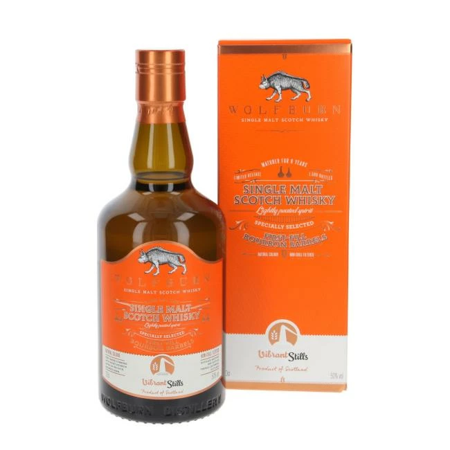 Die diesjährige traditionelle Wolfburn „Vibrant Stills“ Abfüllung ist ein für Deutschland limitierter Single Malt Scotch Whisky. Er wurde in fünf 8 Jahre alten frischen Bourbon Fässern gereift und vermählt. Das komplexe und mit rauchigen Akzenten aufwartende Small Batch Release wurde mit erhöhter Trinkstärke von 50% vol. abgefüllt und kommt ohne Kühlfilterung in natürlicher Farbe in die Flaschen.